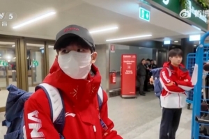中国代表团首批运动队飞抵米兰,包括短道速滑、单板滑雪大跳台队
