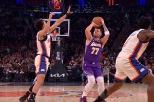 老队友!东契奇强攻布伦森造杀伤 尼克斯挑战成功改判进攻犯规