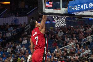 一马当先!贾勒特·阿伦接球反击 面对空篮单臂劈扣