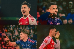 马丁内利在一月份的表现同样出色,他在足总杯第三轮对阵朴茨茅斯的比赛中上演了职业生涯首个帽子戏法,帮助球队以4-1获胜。此外,他在对阵阿拉木图凯拉特的欧冠比赛中也打入一球,成为继亨利之后在单赛季欧冠中进球最多的球员。他在对阵利兹联的比赛中还助攻吉奥克斯,本赛季贡献了12个进球和助攻。