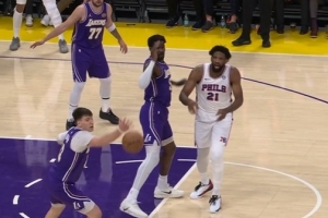 追回来了!八村塁底角命中三分 湖人仅落后76人2分