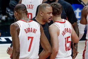 这两场不伦不类申京阿门全废,场上各自功能得赶紧调,申京13+9+3/7+9+5,阿门11+4+4/8+5+7,这说明系统性出问题了,靠杜兰特一个人狂抡能抡赢谁啊?