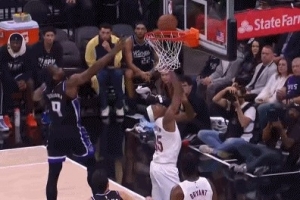 节奏非常快!考德威尔篮下暴力隔扣阿伦 国王82秒打出10-0进攻波