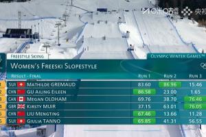 谷爱凌最后一滑失误,瑞士选手确定夺冠后身披国旗完成最后一滑