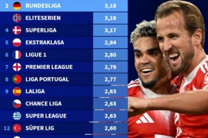 体育资讯2月11日讯 德国转会市场盘点了本赛季欧洲前15大联赛场均进球数,荷甲以3.23球居首,德甲3.18球位居次席。