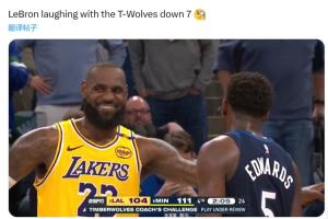 美媒晒詹姆斯最后时刻和爱德华兹以及康利嬉笑视频:勒布朗落后7分和森林狼球员嘻嘻哈哈。
