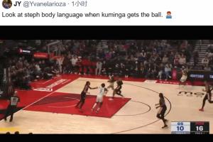 上图即来自该场比赛,库明加视野当中的三位队友均不是库里,他也没有反应过来库里处在空位,库里非常沮丧,而主帅科尔此时也记下了对库明加的“死亡笔记”。