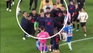 赛后巴萨在球场内庆祝引发西班牙人球员不满,巴尔德推倒西班牙人球员。随后加维准备上前参与,被莱万阻止。