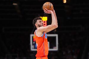 体育资讯5月16日讯 NBA季后赛西部半决赛G6,雷霆半场61-58领先掘金。