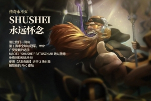 请让我们一同向第1赛季全球总冠军、MVP,广受爱戴的选手Maciej "Shushei" Ratuszniak致以敬意。免费领取纪念头衔;25.10版本期间,使用【古拉加斯】进行3场对局解锁他的FNC皮肤。