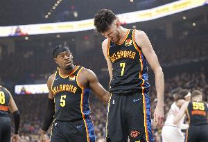体育资讯5月16日讯 西部系列赛G6,雷霆在客场以107-119不敌掘金,系列赛比分来到3-3。赛后,切特-霍姆格伦接受了采访。