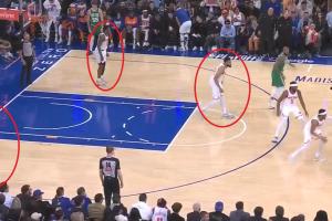 尼克斯场上球员:三位首发布里奇斯、OG、唐斯以及球队第六人麦克布莱德