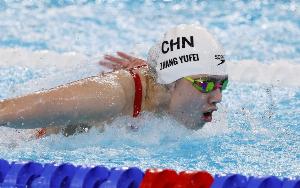 体育资讯5月17日讯 在刚刚结束的全国游泳冠军赛女子100米蝶泳预赛中,江苏选手张雨霏排名小组第一晋级今晚的半决赛。
