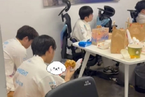 BLG工作人员分享了选手的后台视频:全员观赛,边吃麦当劳边看。