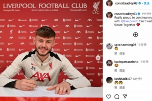 在个人社媒,布拉德利庆祝续约,他写道:非常自豪能与利物浦一起继续我的旅程,迫不及待想和你们迎接新的未来。
