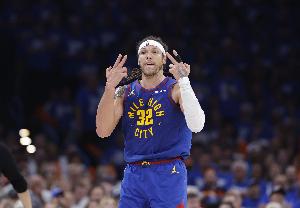 体育资讯5月19日讯 NBA季后赛西部半决赛抢七,掘金半场46-60落后雷霆。