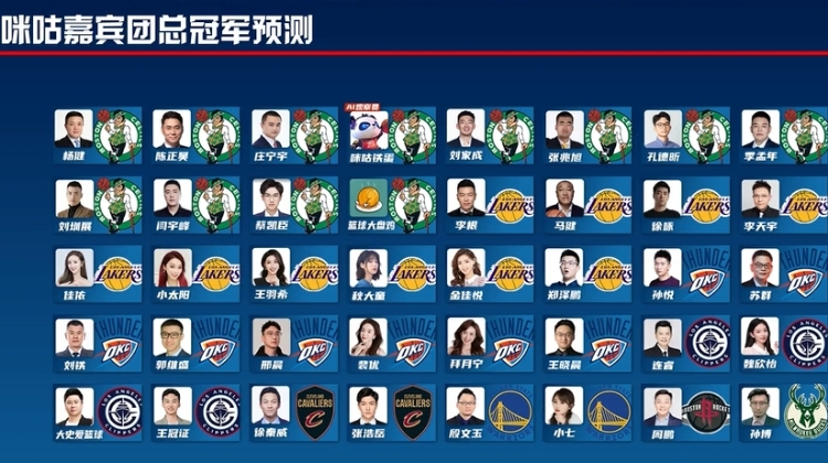咪咕嘉宾团季前赛开始前的总冠军预测,目前仅剩苏群、孙悦等8位雷霆支持者。