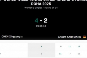 体育资讯5月20日讯 在刚刚结束的多哈世乒赛女单第二轮中,中国选手陈幸同经过六局苦战艰难击败德国选手考夫曼,晋级32强。