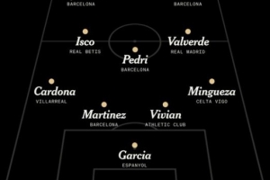 后卫:卡多纳(比利亚雷亚尔)、伊尼戈-马丁内斯(巴萨)、维维安(毕尔巴鄂)、明格萨(塞尔塔)