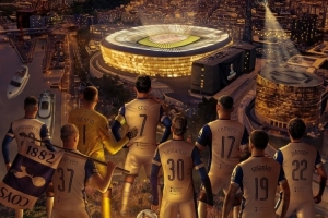 热刺官方社媒发布了为此役制作的海报,内容为孙兴慜、罗梅罗、本坦库尔、维卡里奥、索兰克等热刺球员远眺圣马梅斯球场。