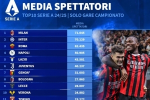 体育资讯5月21日讯 德国转会市场统计了意甲球队本赛季前37轮比赛的主场平均上座人数,并列出榜单,米兰双雄排名前两位。