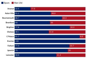 【吃瓜群众的支持率🥹】今晚热刺和曼联争夺欧联杯冠军,TA对其他18支英超俱乐部的球迷进行了调查,询问他们希望哪支球队获胜。