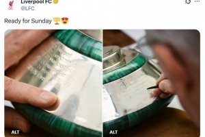 利物浦已经夺得本赛季英超冠军,俱乐部官方社媒晒出英超奖杯刻上利物浦名字的照片,并配文:“为周日做好准备”。