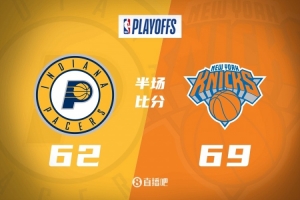 体育资讯5月22日讯 NBA季后赛东部决赛G1,尼克斯半场69-62领先步行者。