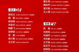 朱辰杰、杨泽翔、徐皓阳、刘诚宇四名申花队员入选国足新一期集训名单。