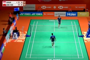 体育资讯5月22日讯 在刚刚结束的马来西亚羽毛球大师赛男单第二轮中,中国选手翁泓阳经过三局苦战击败印尼选手法汉,晋级马来西亚羽毛球大师赛男单8强。