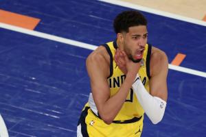 哈利伯顿踩着弧顶三分线投进绝平球,在麦迪逊广场花园锁喉庆祝
