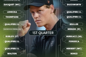 前8号种子对位方面,辛纳对位德雷珀、德约科维奇对位小兹维列夫、穆塞蒂对位弗里茨、鲁德对位阿尔卡拉斯。