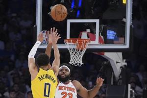常规时间最后时刻,步行者指挥官哈利伯顿运球推进到前场,在尼克斯中锋米切尔-罗宾逊面前撤步踩着三分线压哨出手,皮球弹得很高,随后掉进篮筐,将比赛拖进加时。加时赛最后2分钟,哈利伯顿2中1。