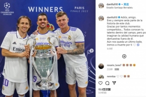 体育资讯5月23日讯 莫德里奇即将离队,塞巴略斯发文祝福。