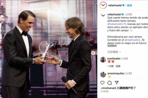 体育资讯5月23日讯 不久前,网球巨星纳达尔更新了社交媒体,祝福了将离开皇马的莫德里奇。