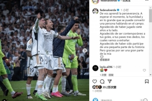 巴尔韦德社媒晒出与莫德里奇的合照,并写道:“从你那里,我学会了坚持不懈,学会了等待时机,学会了谦逊,以及一个人通过球场上的言行可以变得多么伟大。
