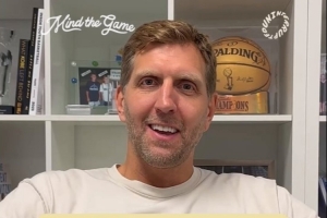 诺维茨基说:“嗨,勒布朗和史蒂夫,感谢你们对我的夸赞。这个甲区单打起始于对手球队在面对我的挡拆时大量换防,等我面对小个球员运球卷切到三秒区内时,另一个防守人会从弱侧换防回来。这样你的进攻时间所剩无几,但等我转身过后,我的身边还有一个大个防我。