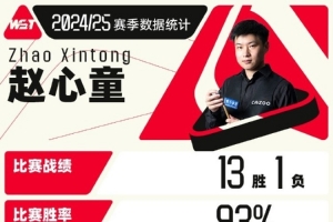 体育资讯5月23日讯 世界斯诺克锦标赛官方统计了新科世锦赛冠军赵心童2024/25赛季部分数据,赵心童单赛季最高分146分,平均出杆用时19.6秒。