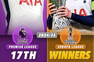 本赛季欧联杯决赛,热刺击败曼联,以英超第17的排名夺得欧联冠军,大幅刷新赛事纪录。