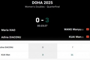 体育资讯5月23日讯 在刚刚结束的世乒赛女双1/4决赛中,中国组合王曼昱/蒯曼直落三局击败跨国组合肖瑶茜/迪亚科努,晋级本届世乒赛女双4强。