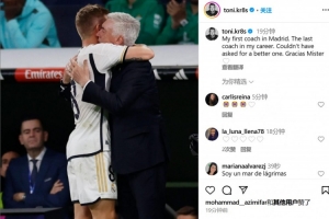 克罗斯晒出了两人的拥抱合照,写道:“我在马德里的第一位教练,也是我职业生涯中的最后一位教练。不能要求更好的了。谢谢您,教练。”