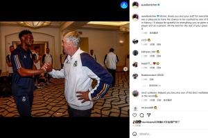 琼阿梅尼更新社交媒体晒照发公开信告别安切洛蒂。