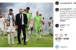 纳乔社媒晒出与安切洛蒂的合照,并写道:“谢谢你,教练。感谢你给我们带来了这么多年的美妙岁月,能够与你以及你的团队共事是我的荣幸,祝你在新的阶段一切顺利。”