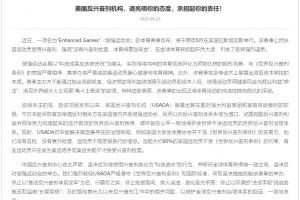 中国反兴奋剂中心在此声明:坚决反对将使用兴奋剂美化为“科技进步”的行为,并呼吁全球体育界保持一致立场,坚决反对增强运动会的举办。我们强烈敦促USADA严格遵守《世界反兴奋剂条例》和国际标准,采取坚决措施抵制该赛事的举办;停止以“推动反兴奋剂体系改革”为名,行霸权之实;停止挑拨离间、拱火浇油,激化各方矛盾;停止以所谓的“法律手段”搞威胁施压和滥施“长臂管辖”,及时整改其长久以来反兴奋剂工作中的相关问题,以维护全球反兴奋剂治理体系的稳定、一致与发展。