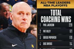 步行者主帅卡莱尔取得了生涯第81场季后赛胜利,追平凯尔特人名宿KC-琼斯,并列NBA历史第十。