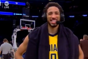 赛后哈利伯顿连线TNT演播室接受采访,巴克利对他大喊道:“把你爸爸放出来(Free your dad)!”哈利伯顿哈哈大笑。