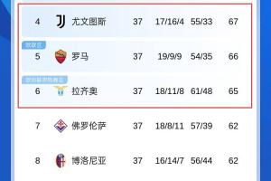 争四方面,尤文图斯67分暂列意甲第4占据主动权,罗马66分拉齐奥65分紧追不舍。最后一轮,尤文赢球即可结束争四悬念。