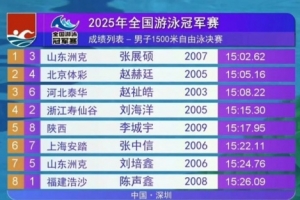 男子1500米自由泳决赛成绩