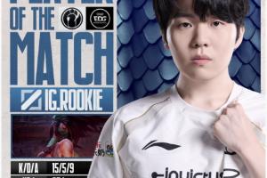 体育资讯5月24日讯 在刚刚结束的比赛中,iG成功横扫EDG晋级淘汰赛;虽然是横扫但决胜局双方战至47分钟,iG中单Rookie燃尽自己使用阿卡丽砍下15杀才帮助队伍最终取胜。