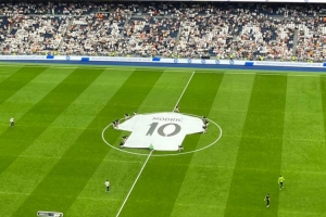 本场比赛是皇马传奇中场莫德里奇的主场告别战,赛前,皇马在伯纳乌向莫德里奇致敬,他们在球场中圈晒出莫德里奇的巨型10号球衣。